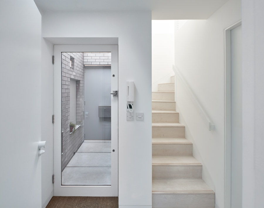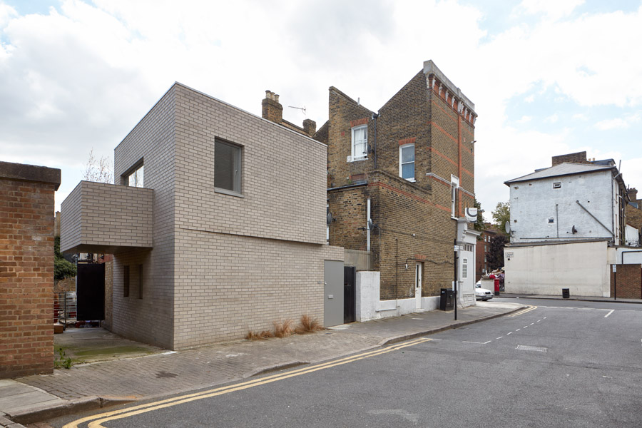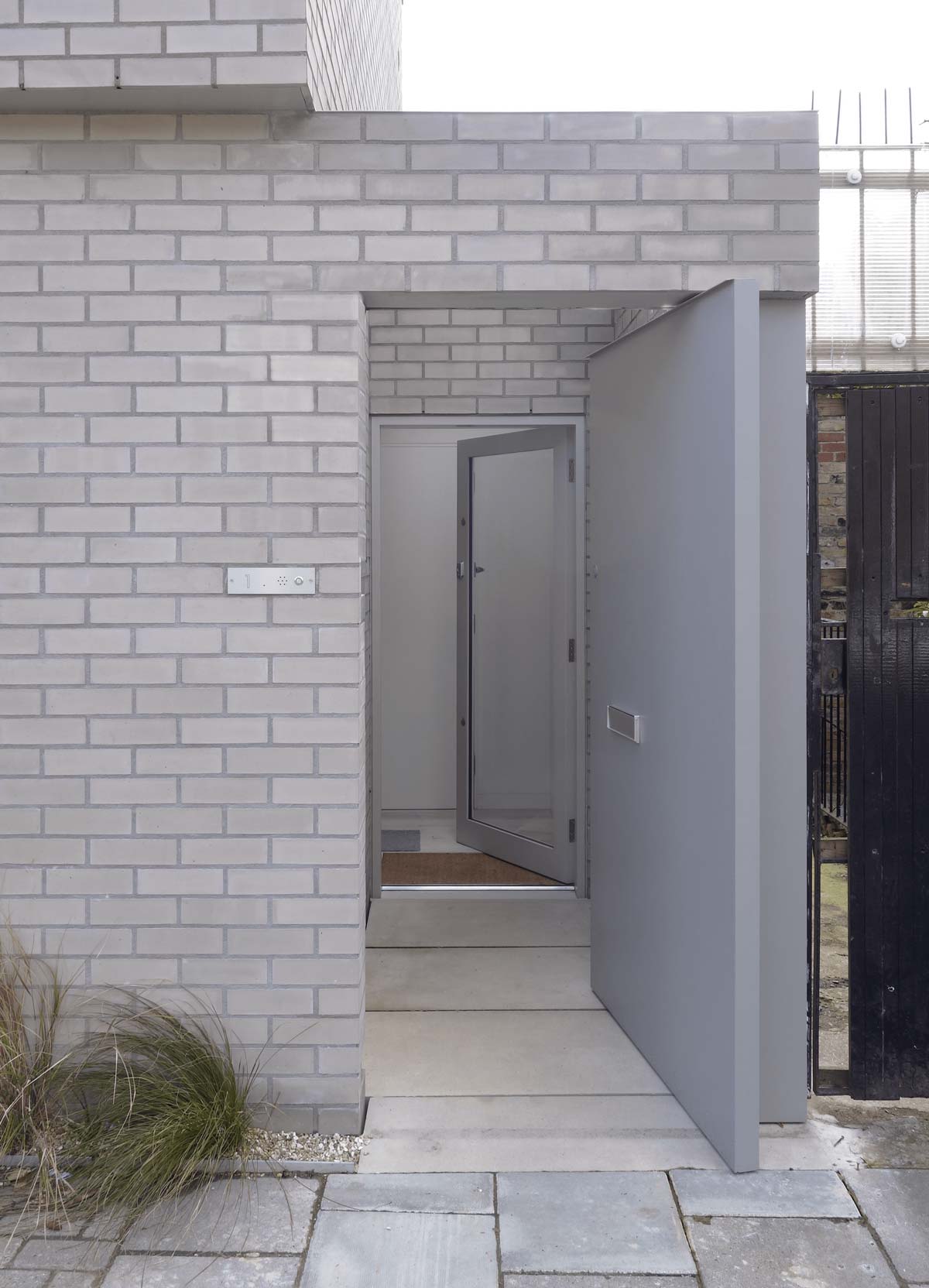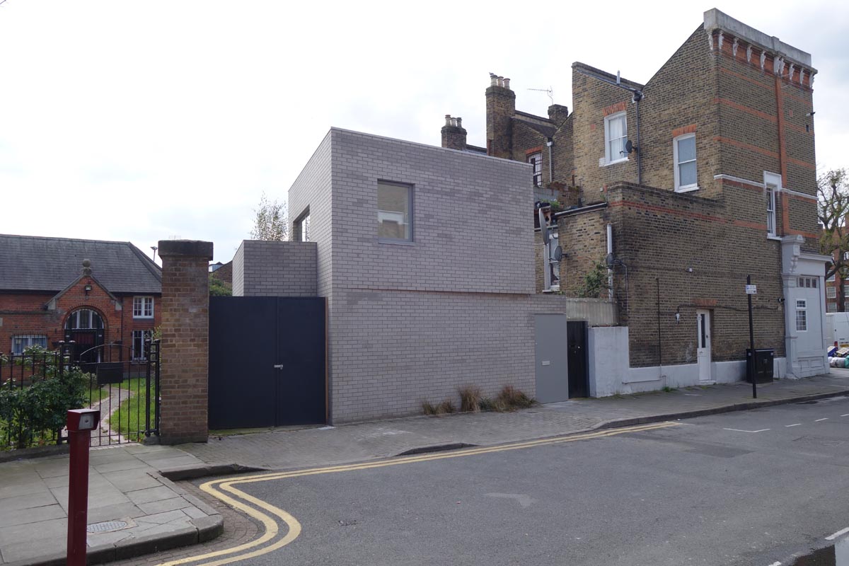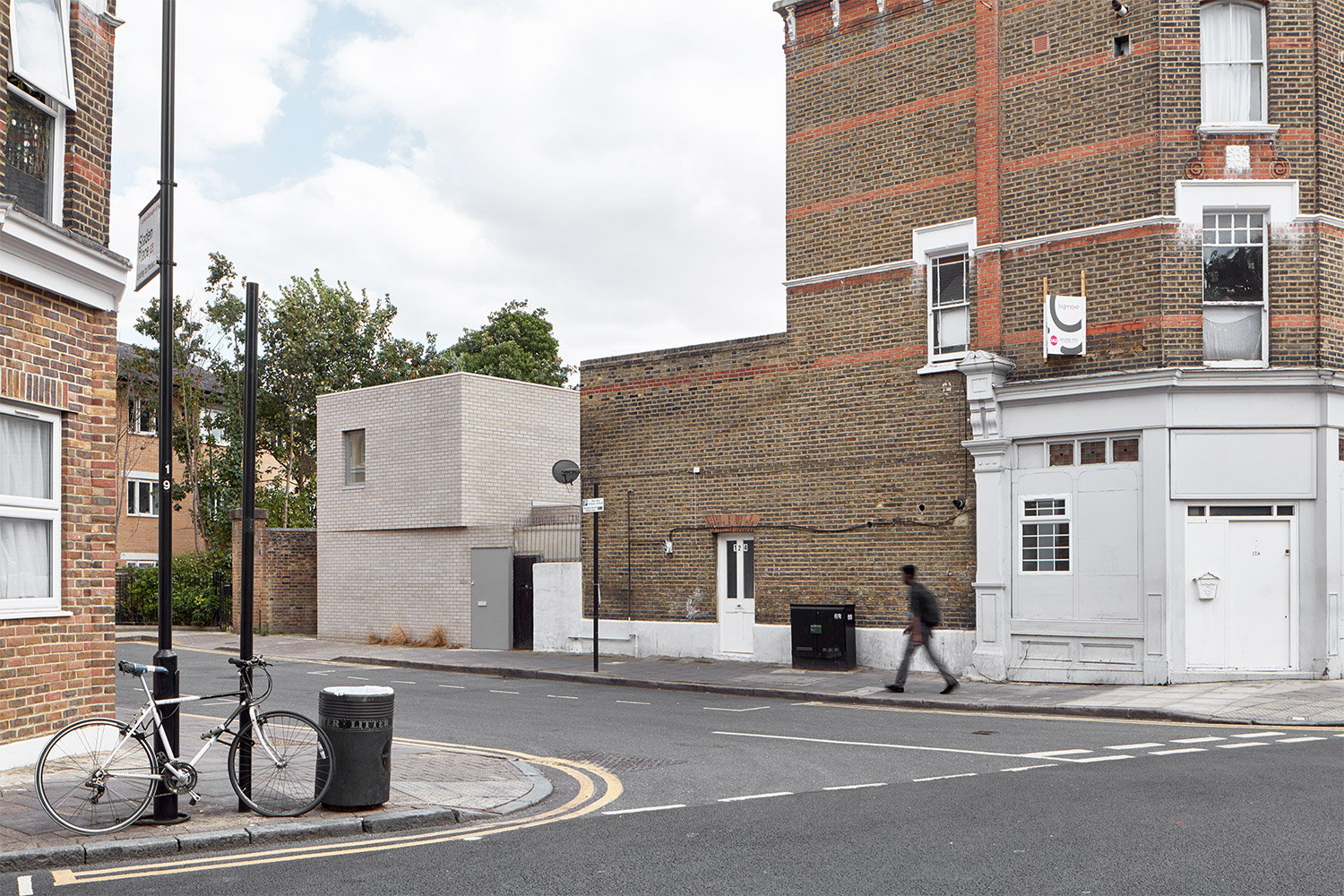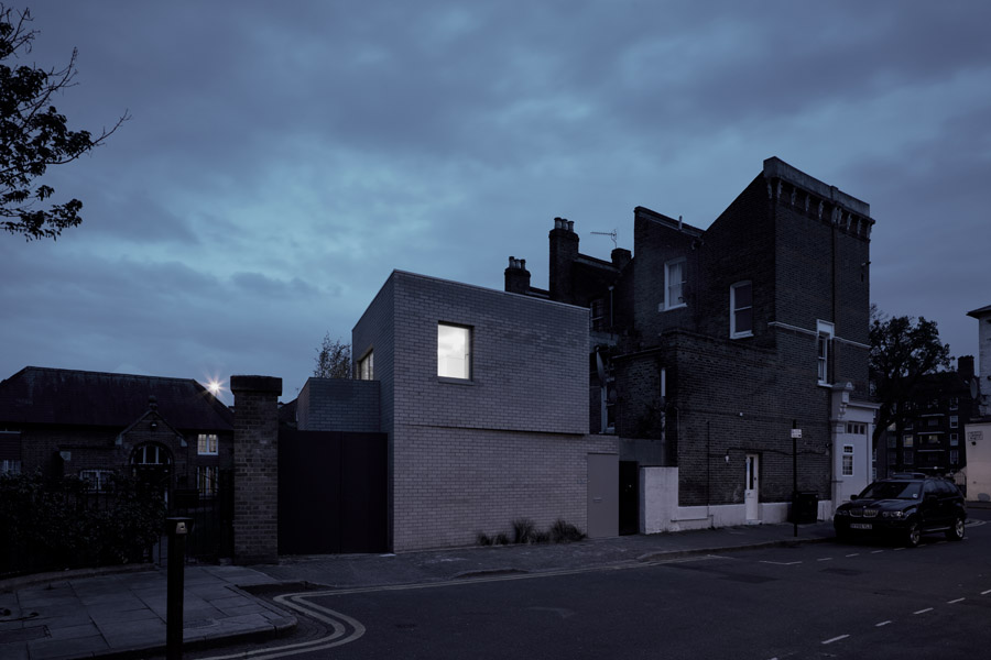 At ground floor level the simple brick front elevation wall tapers and offers back a thin wedge of garden to the street, suggestive of the domesticity beyond its defensive shell. Behind the concealed street door hides the smallest of courtyards leading to an entrance, bedroom, bathroom and kitchen. Elevated above street level, the first floor is reserved for the main living space with views overlooking the chaotic yards of the adjacent terrace, the streetscape and the more tranquil gardens of the of what used to be the Mothers' Hospital.