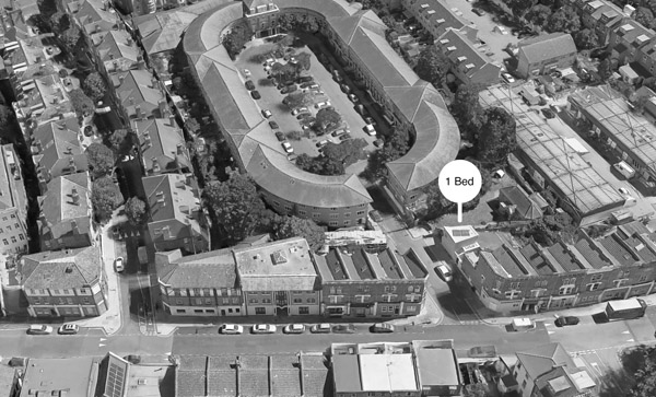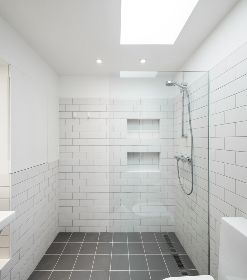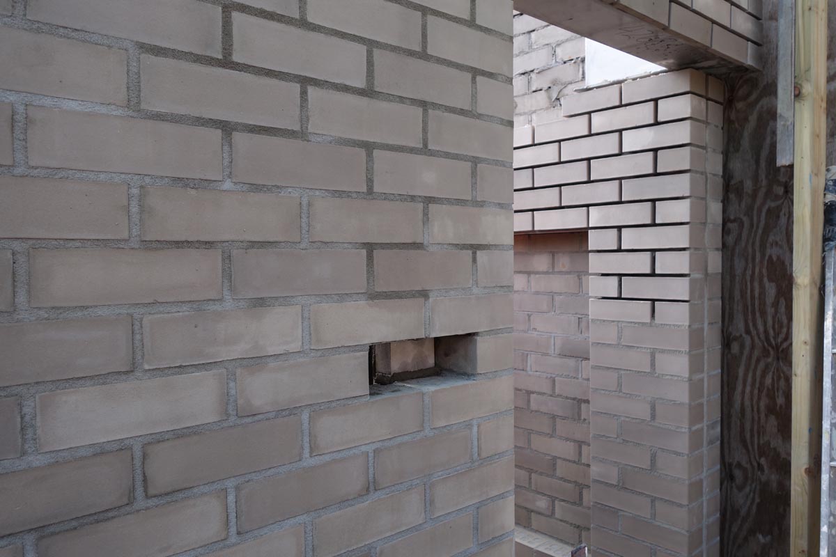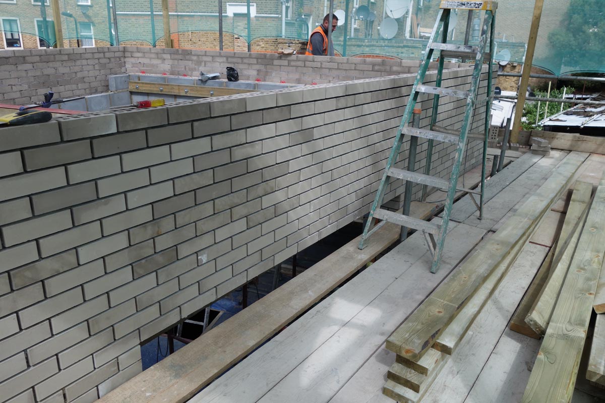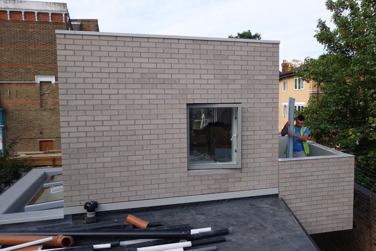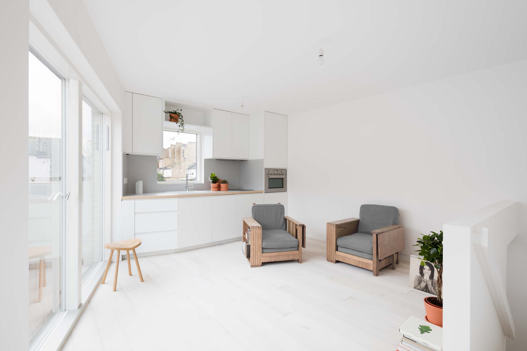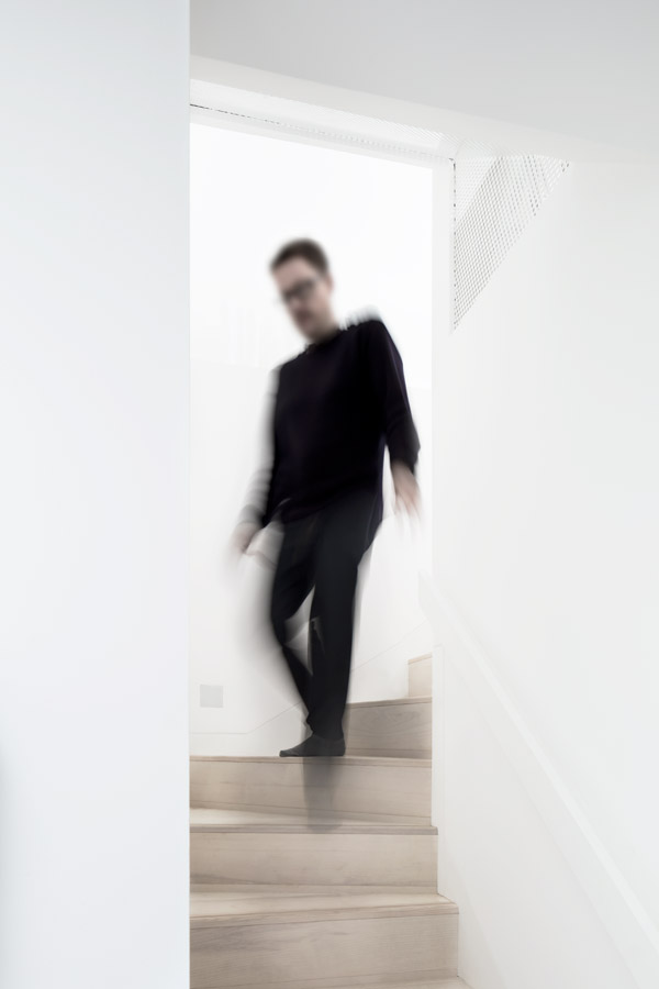 At ground floor level the simple brick front elevation wall tapers and offers back a thin wedge of garden to the street, suggestive of the domesticity beyond its defensive shell. Behind the concealed street door hides the smallest of courtyards leading to an entrance, bedroom, bathroom and kitchen. Elevated above street level, the first floor is reserved for the main living space with views overlooking the chaotic yards of the adjacent terrace, the streetscape and the more tranquil gardens of the of what used to be the Mothers' Hospital.