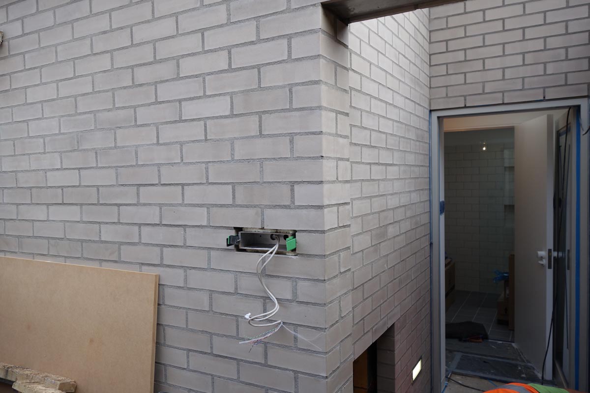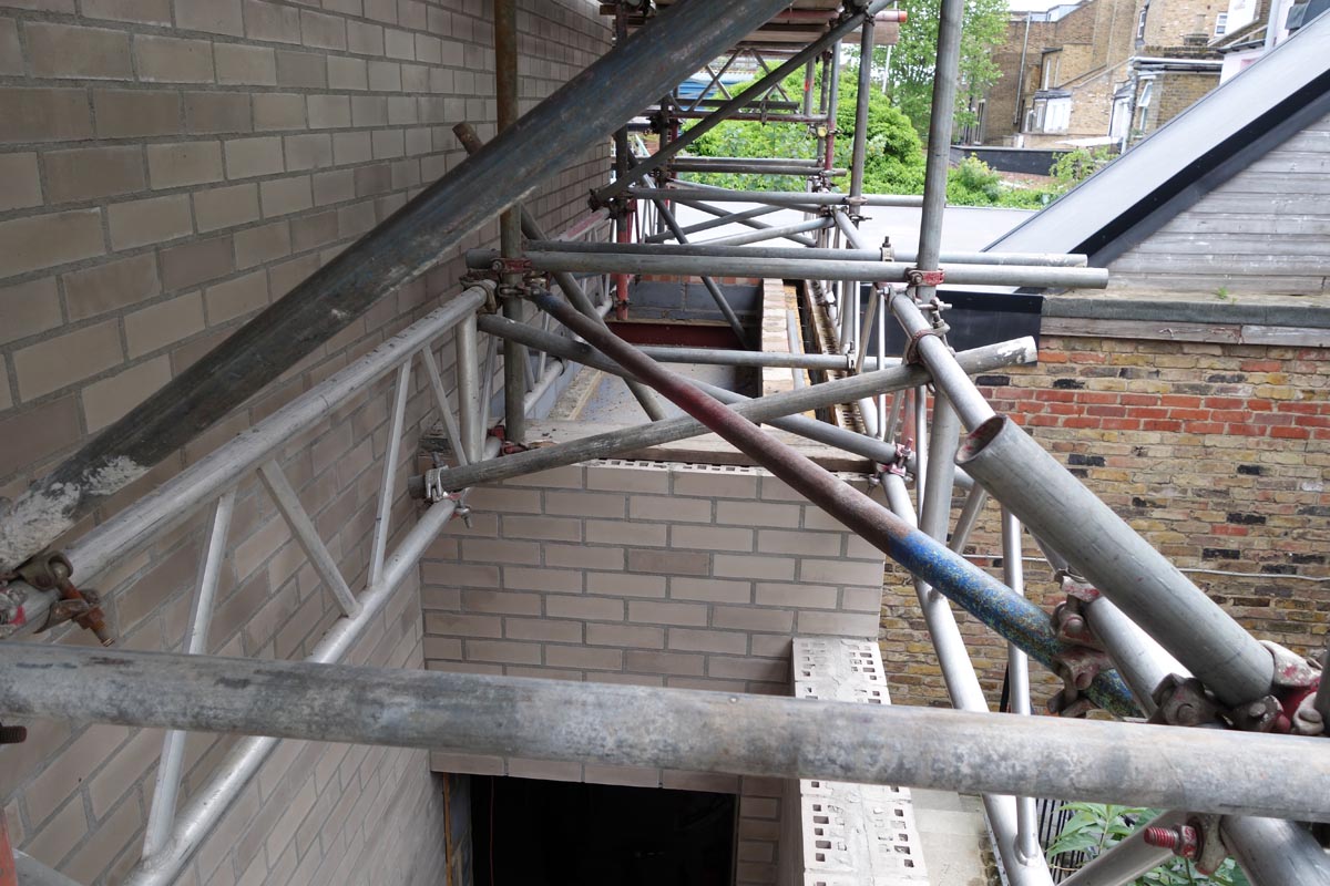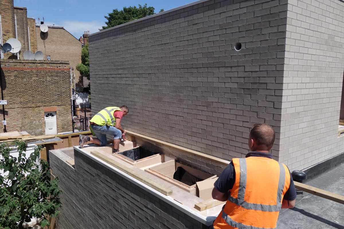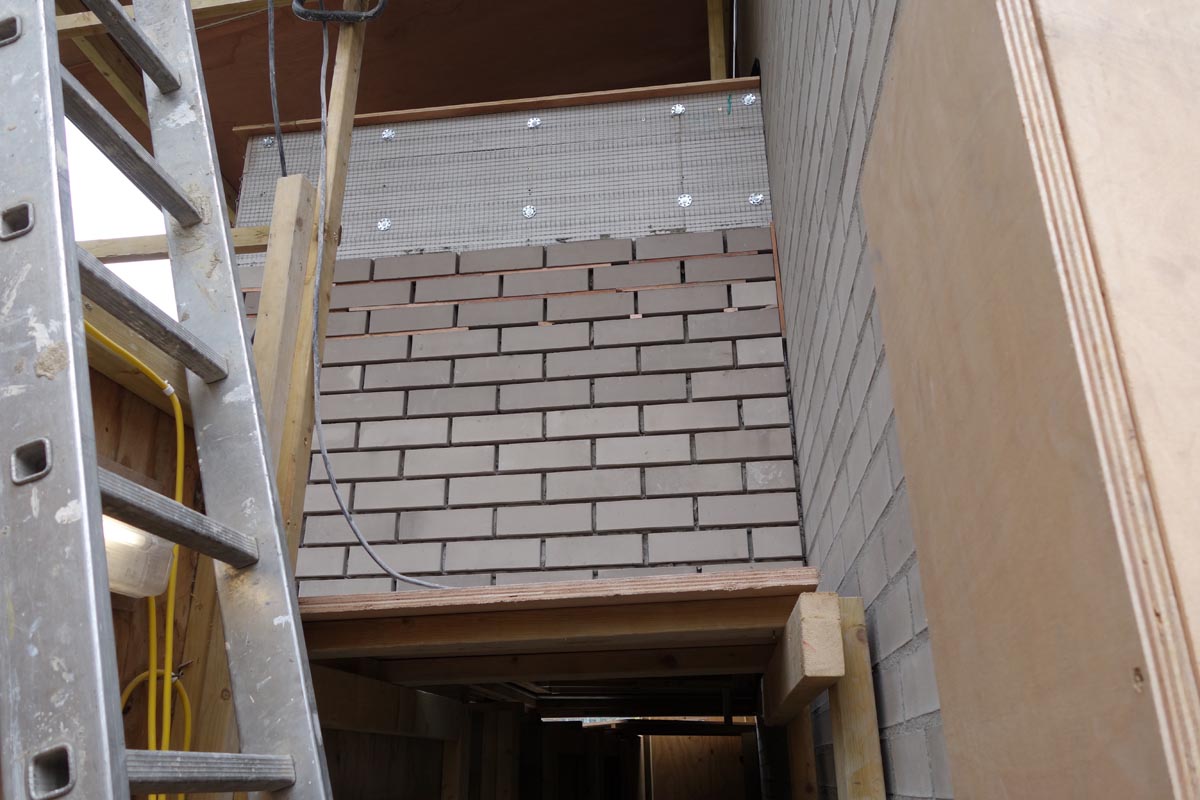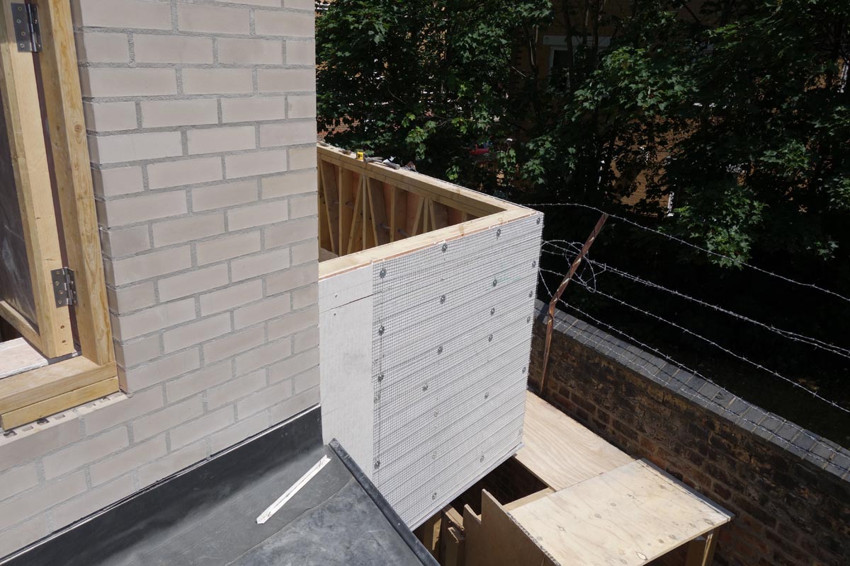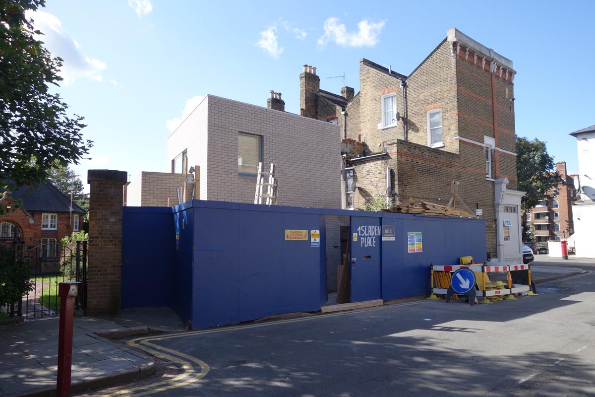 At ground floor level the simple brick front elevation wall tapers and offers back a thin wedge of garden to the street, suggestive of the domesticity beyond its defensive shell. Behind the concealed street door hides the smallest of courtyards leading to an entrance, bedroom, bathroom and kitchen. Elevated above street level, the first floor is reserved for the main living space with views overlooking the chaotic yards of the adjacent terrace, the streetscape and the more tranquil gardens of the of what used to be the Mothers' Hospital.