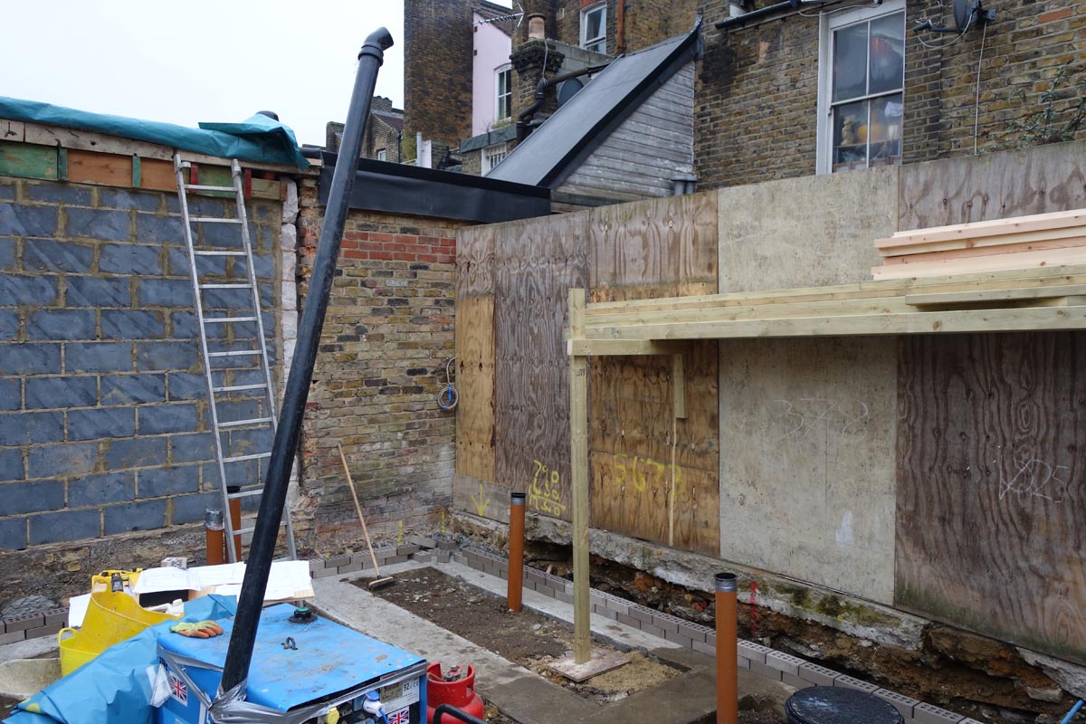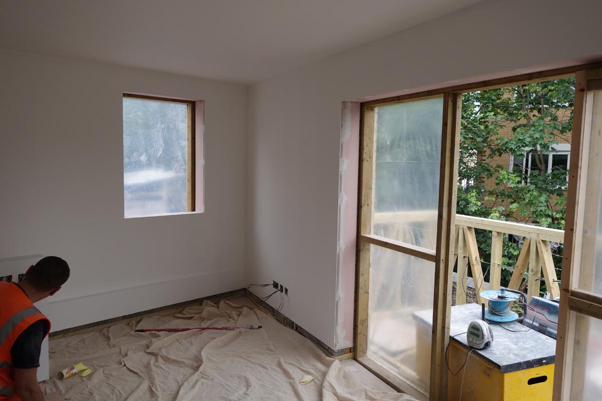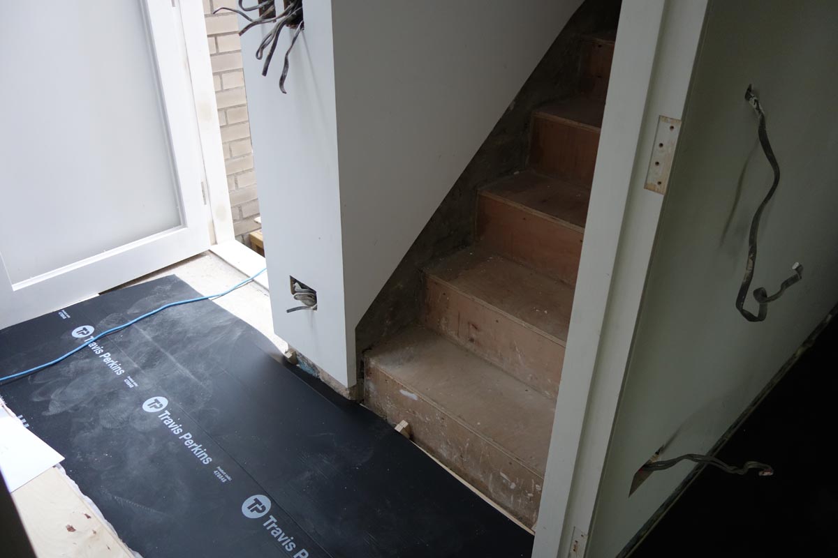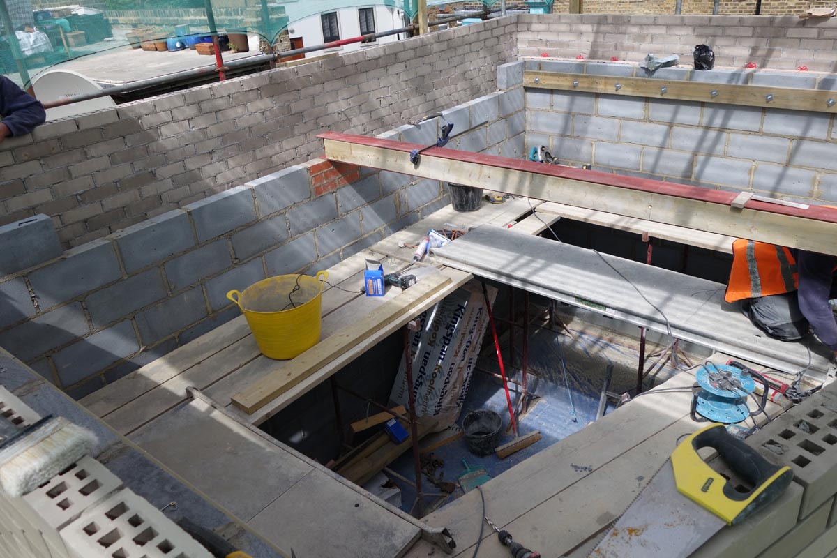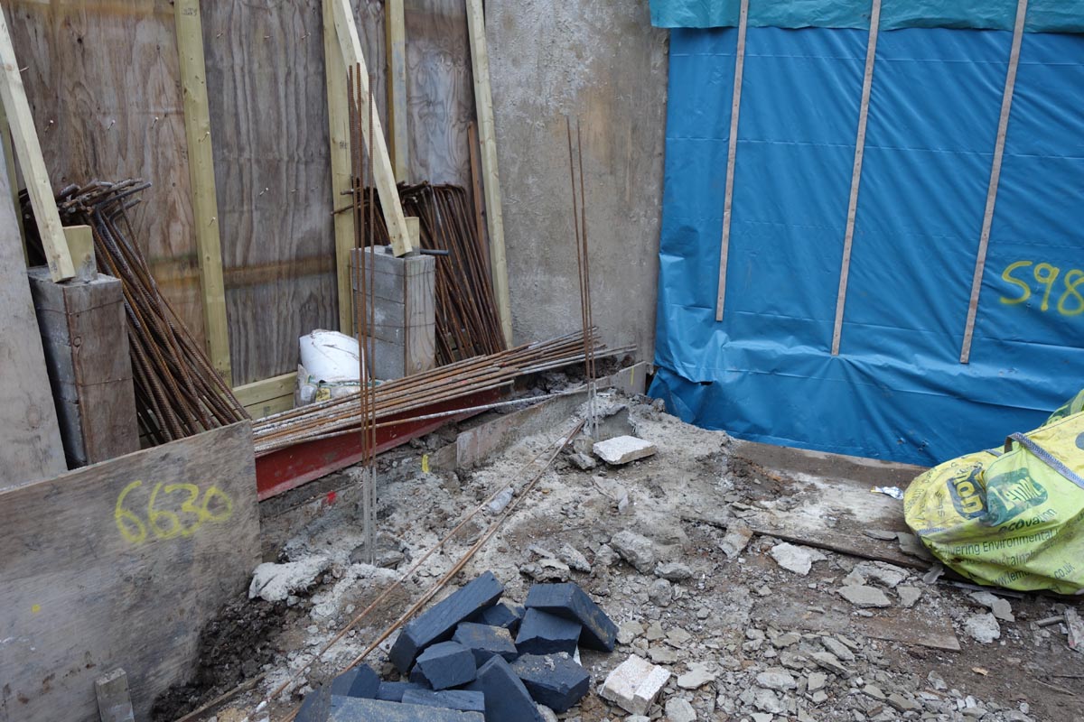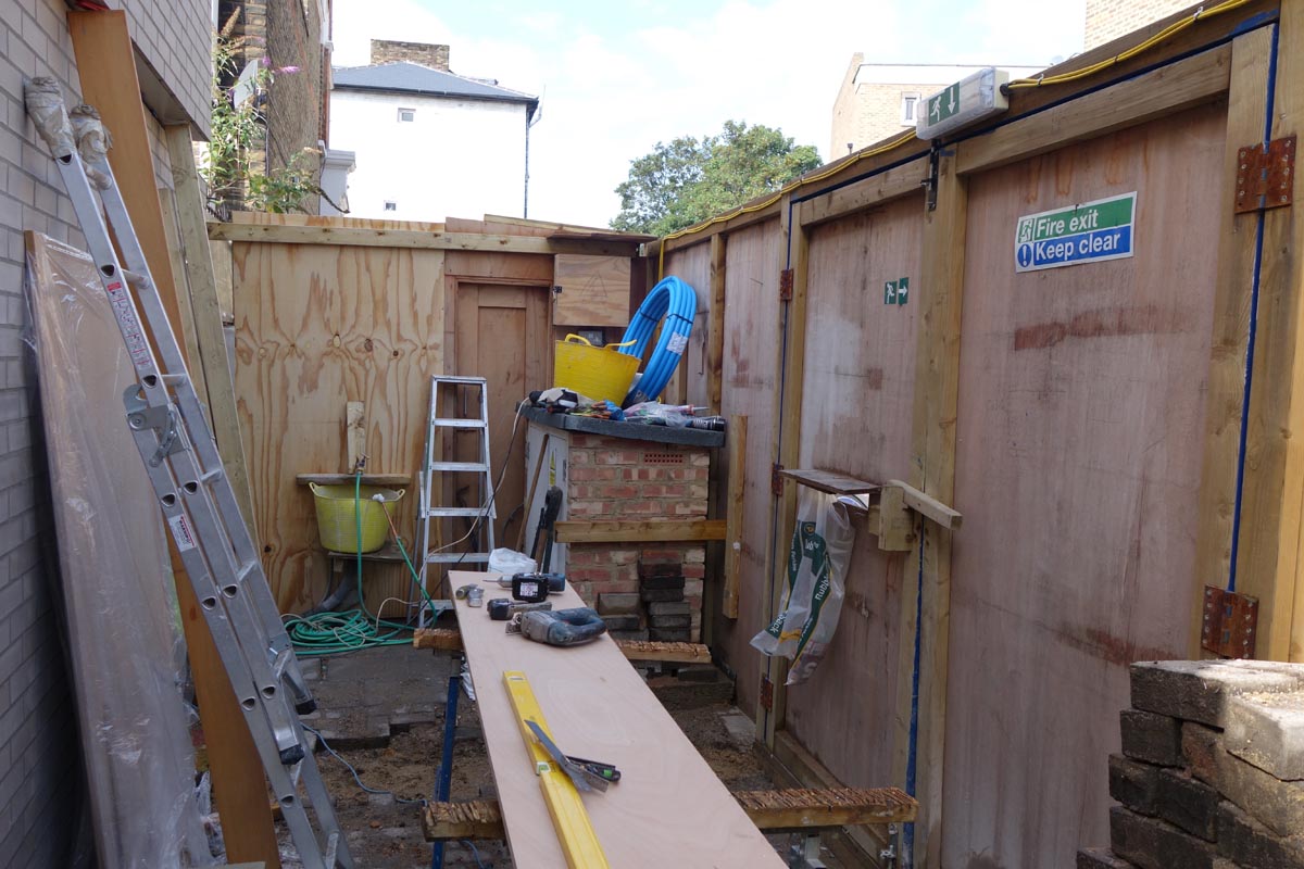 At ground floor level the simple brick front elevation wall tapers and offers back a thin wedge of garden to the street, suggestive of the domesticity beyond its defensive shell. Behind the concealed street door hides the smallest of courtyards leading to an entrance, bedroom, bathroom and kitchen. Elevated above street level, the first floor is reserved for the main living space with views overlooking the chaotic yards of the adjacent terrace, the streetscape and the more tranquil gardens of the of what used to be the Mothers' Hospital.