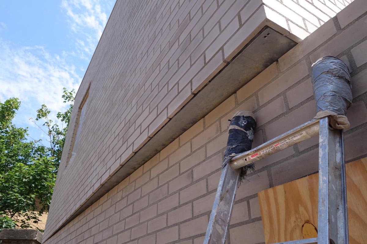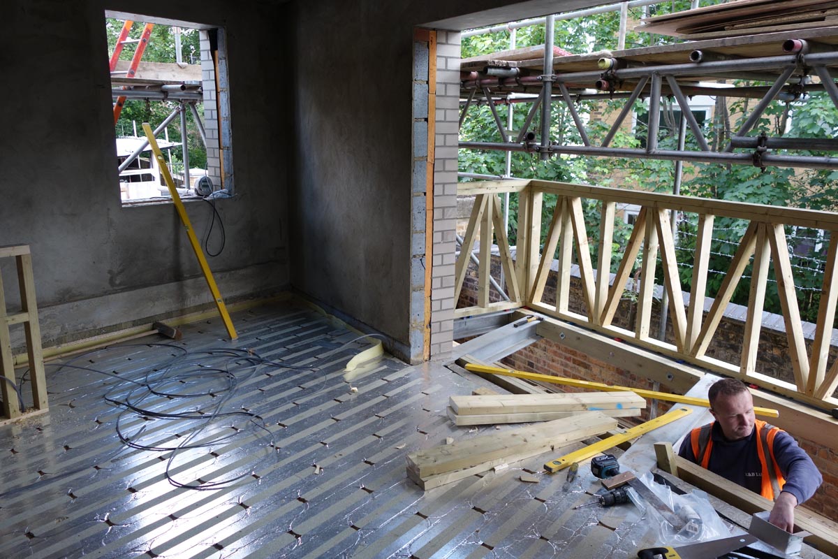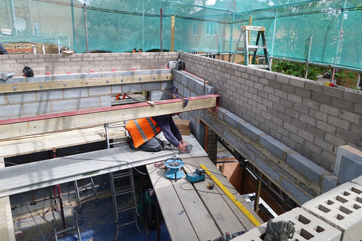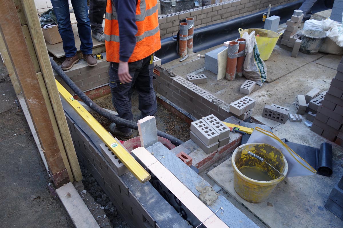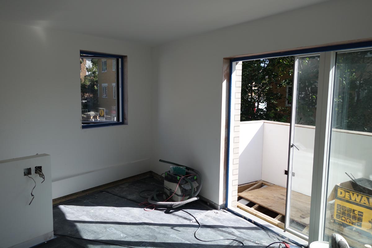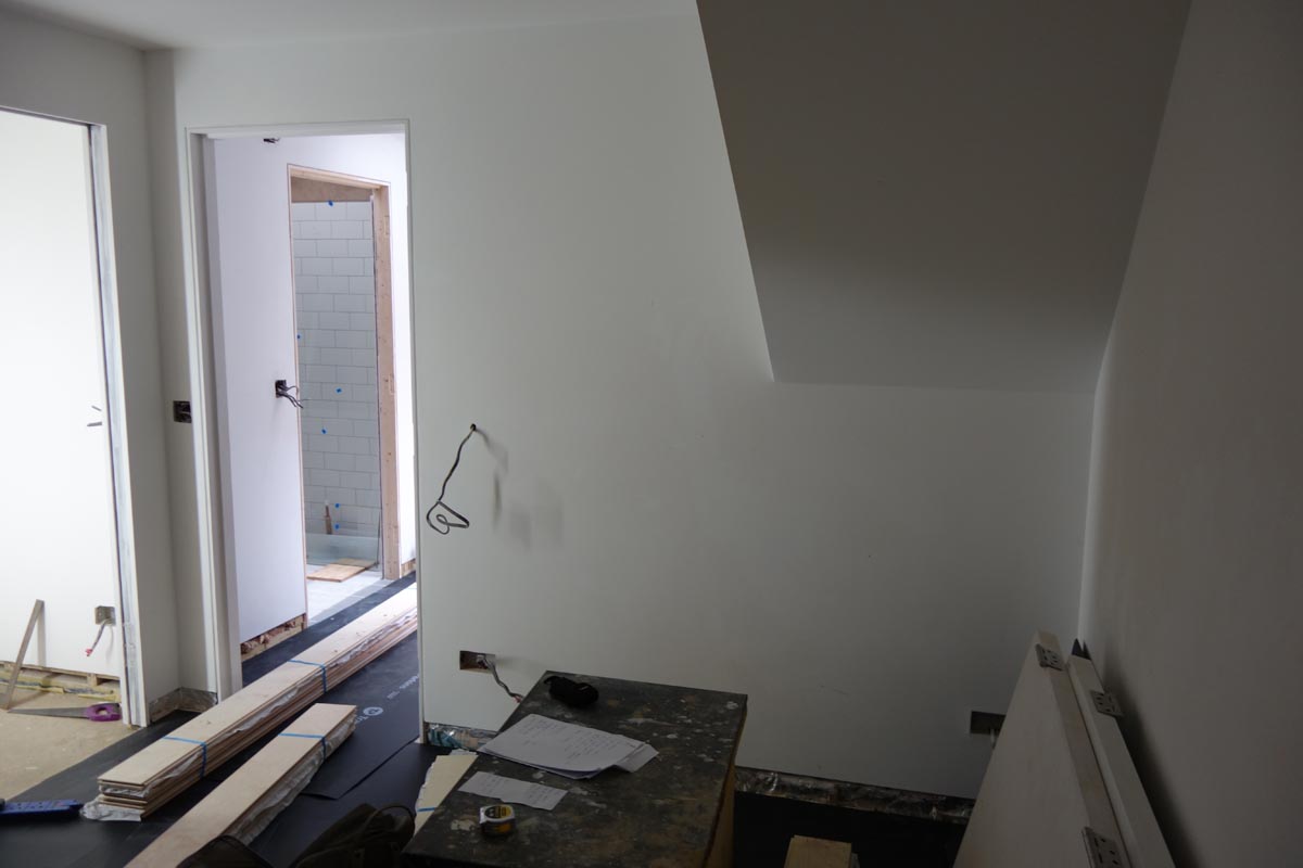 At ground floor level the simple brick front elevation wall tapers and offers back a thin wedge of garden to the street, suggestive of the domesticity beyond its defensive shell. Behind the concealed street door hides the smallest of courtyards leading to an entrance, bedroom, bathroom and kitchen. Elevated above street level, the first floor is reserved for the main living space with views overlooking the chaotic yards of the adjacent terrace, the streetscape and the more tranquil gardens of the of what used to be the Mothers' Hospital.