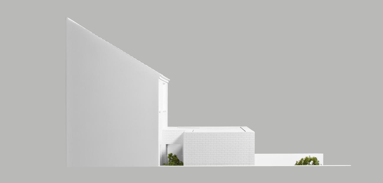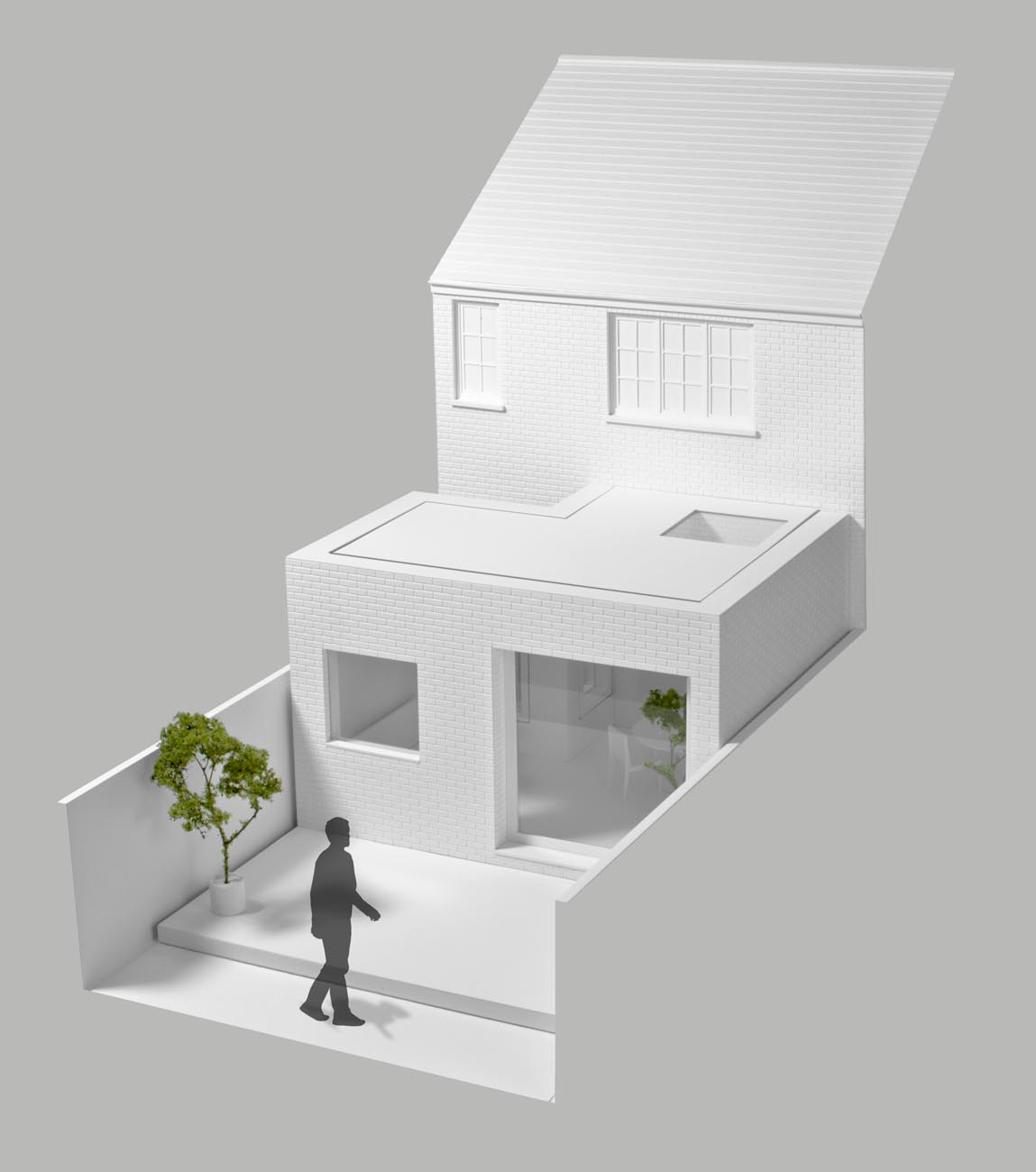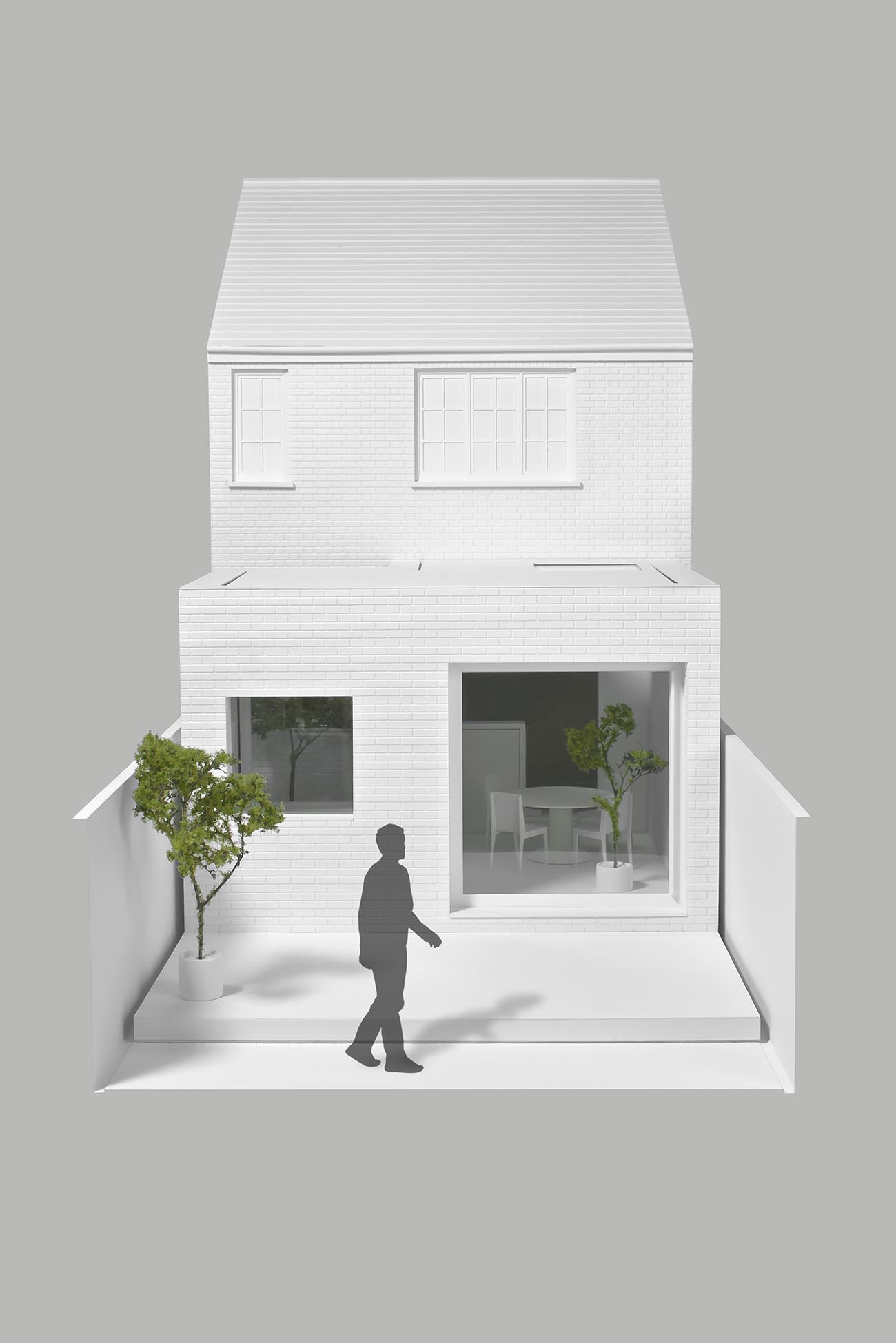 A rear extension to a modest two-storey terrace house in South West London. The full width extension is designed to incorporate a small planted courtyard area bringing the exterior into the interior and vice versa. The extension seating area has garden on both sides, creating a sense of detachment and escape from the main house and immersion in the garden. The courtyard retains natural light and ventilation to the existing bathroom window and kitchen area.