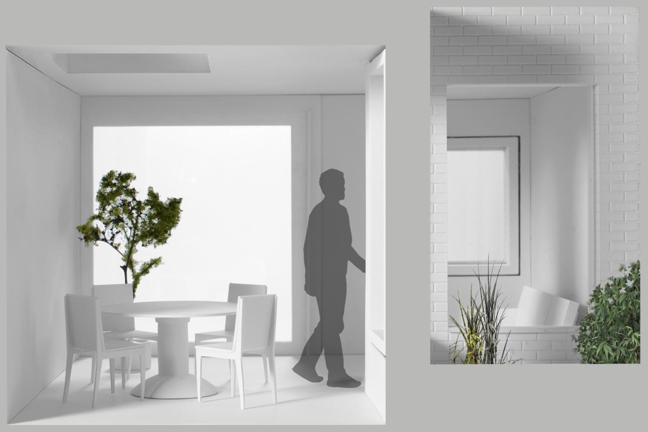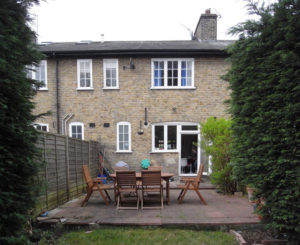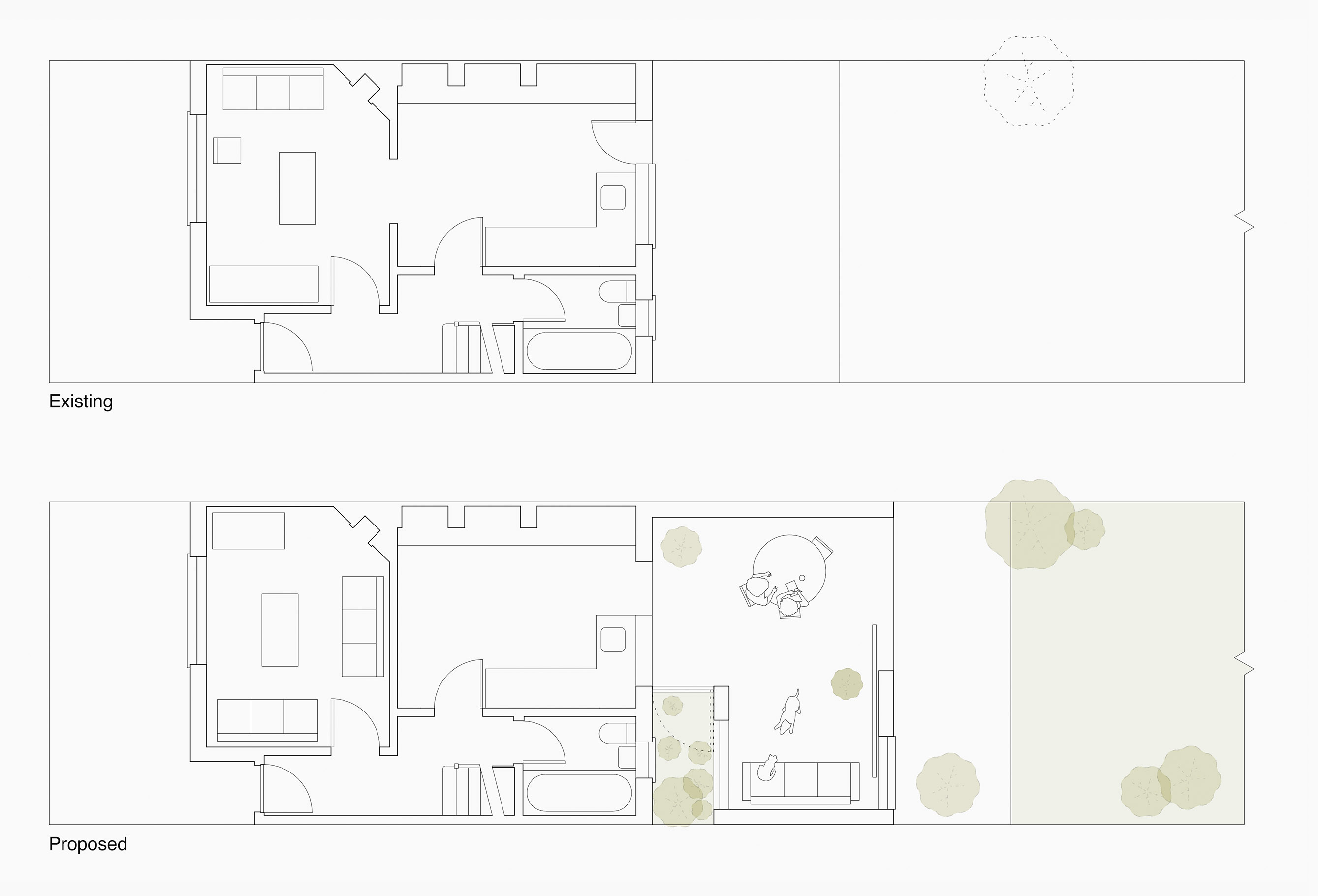 A rear extension to a modest two-storey terrace house in South West London. The full width extension is designed to incorporate a small planted courtyard area bringing the exterior into the interior and vice versa. The extension seating area has garden on both sides, creating a sense of detachment and escape from the main house and immersion in the garden. The courtyard retains natural light and ventilation to the existing bathroom window and kitchen area.