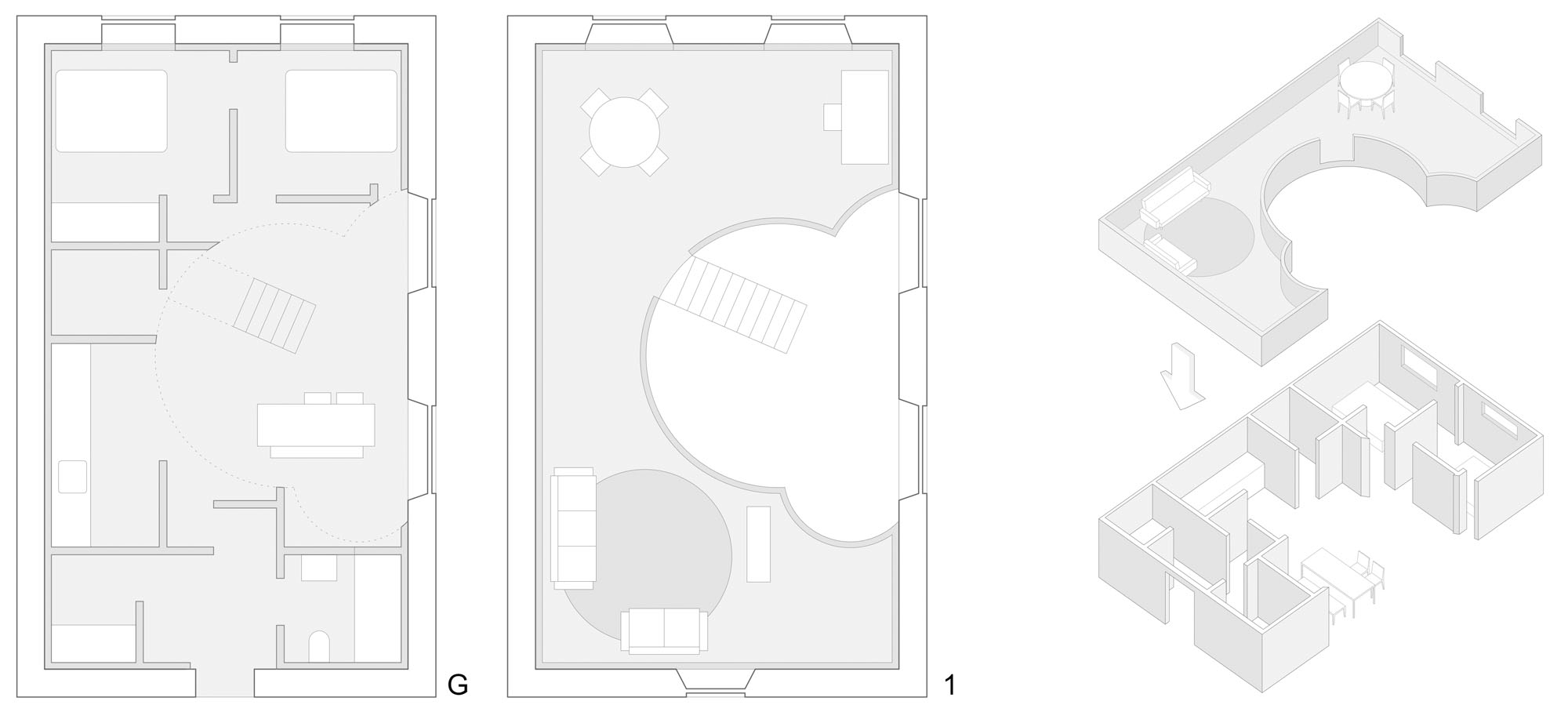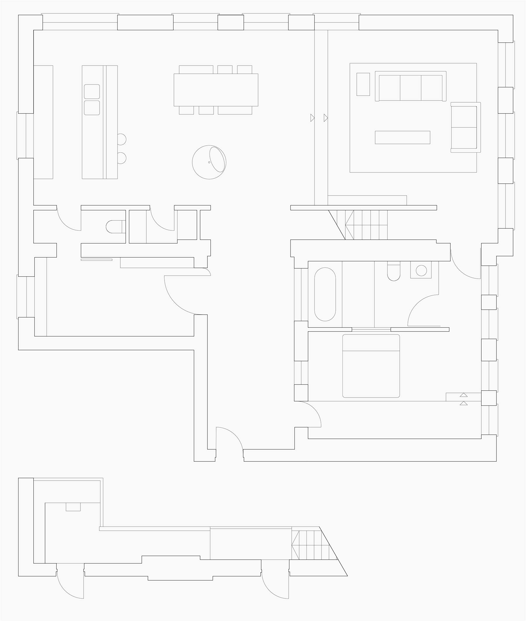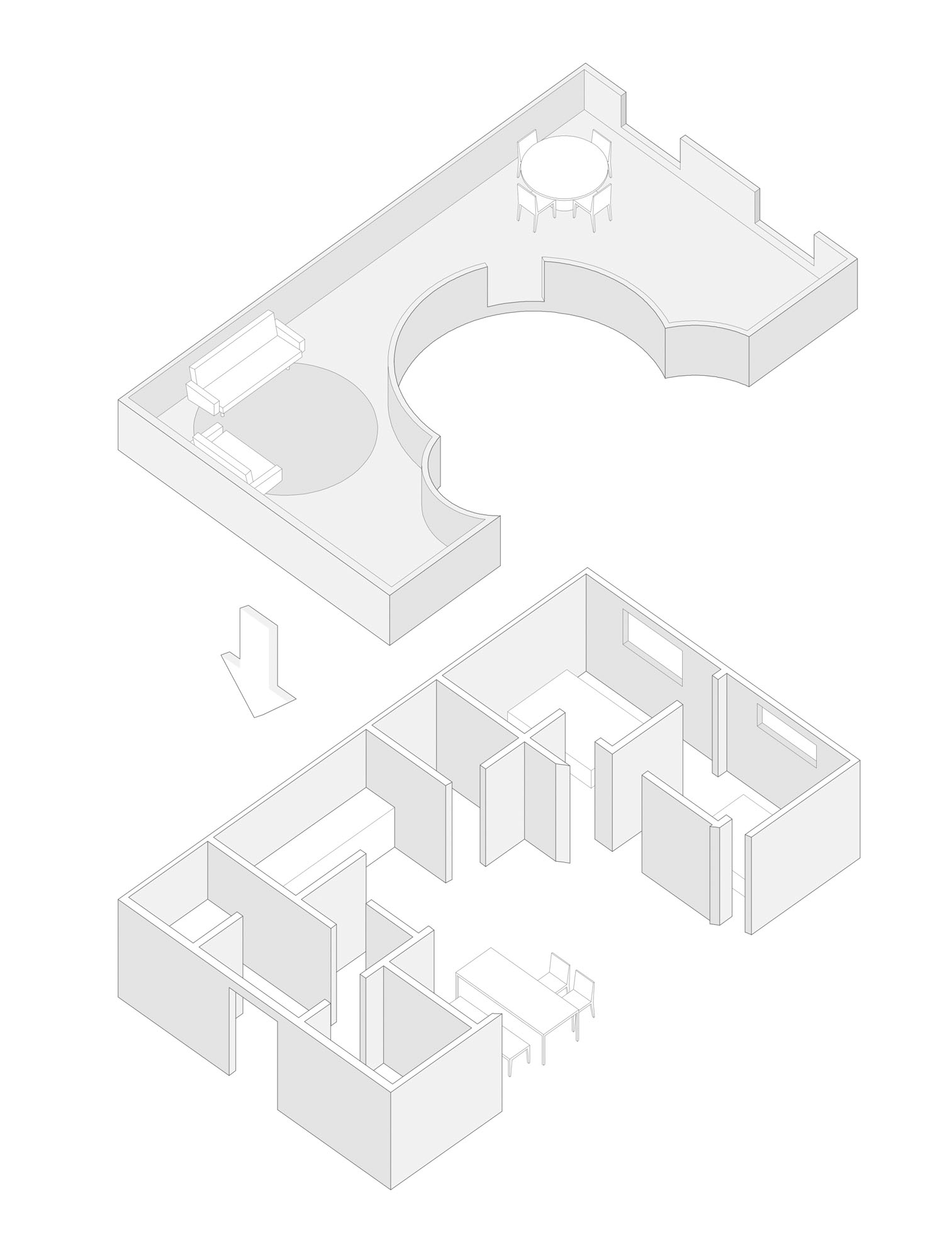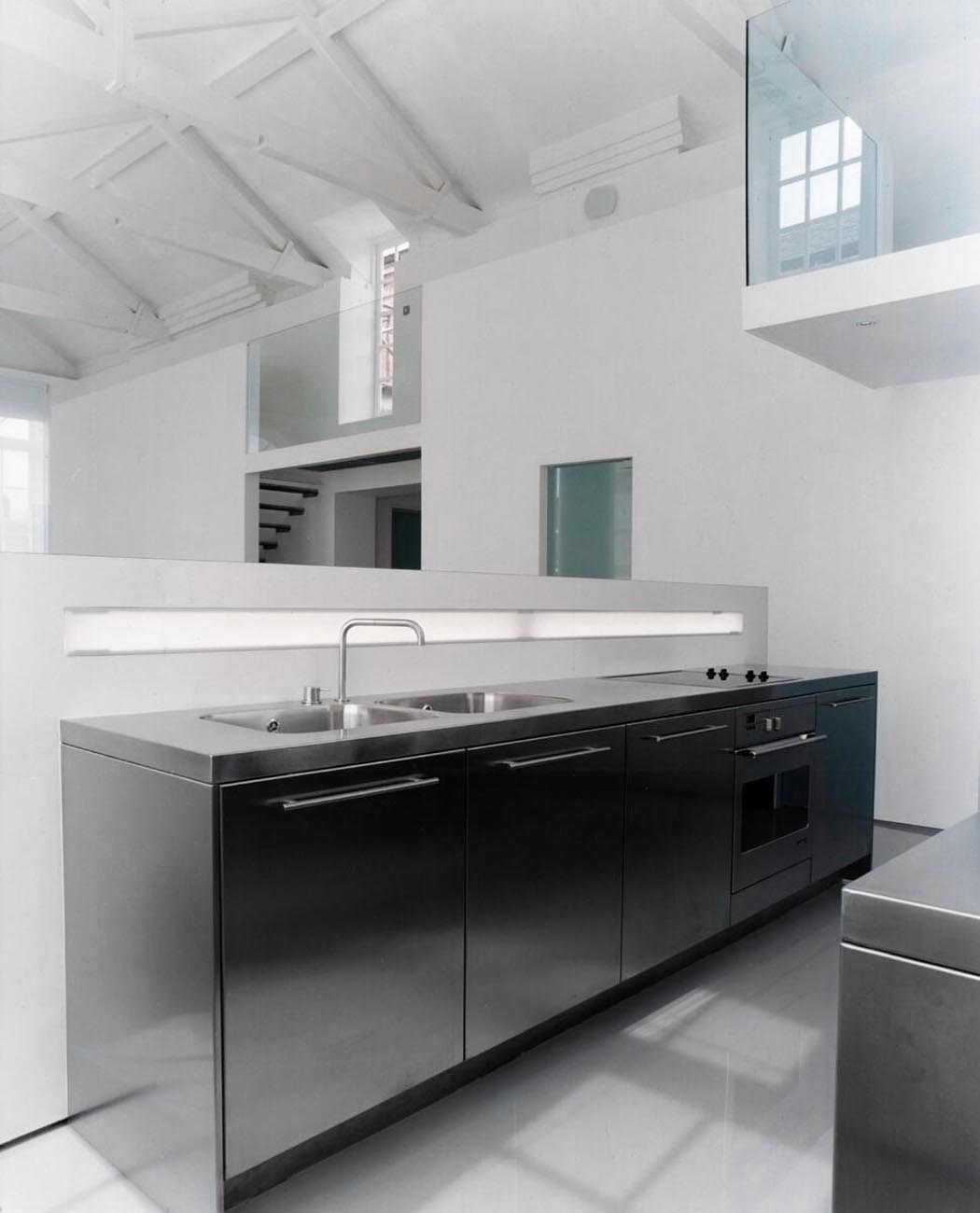 The Lycee is a loft apartment for a professional fashion photographer, in a converted South London school building. As the second home for our New York based client, the space is also used as a location for photographic shoots. As such, the project was developed as a series of architectural elements to provide strong but neutral background features or framing for photographs. The level change in the main space and bedrooms varies the topography of the interior. Floating walls and multiple openings to each room allow the spaces to be viewed or lit from a variety of directions. As both a home and a photographic location the layering of spaces constantly change as you move through and around the apartment offering an animated, open-ended backdrop for living and working.