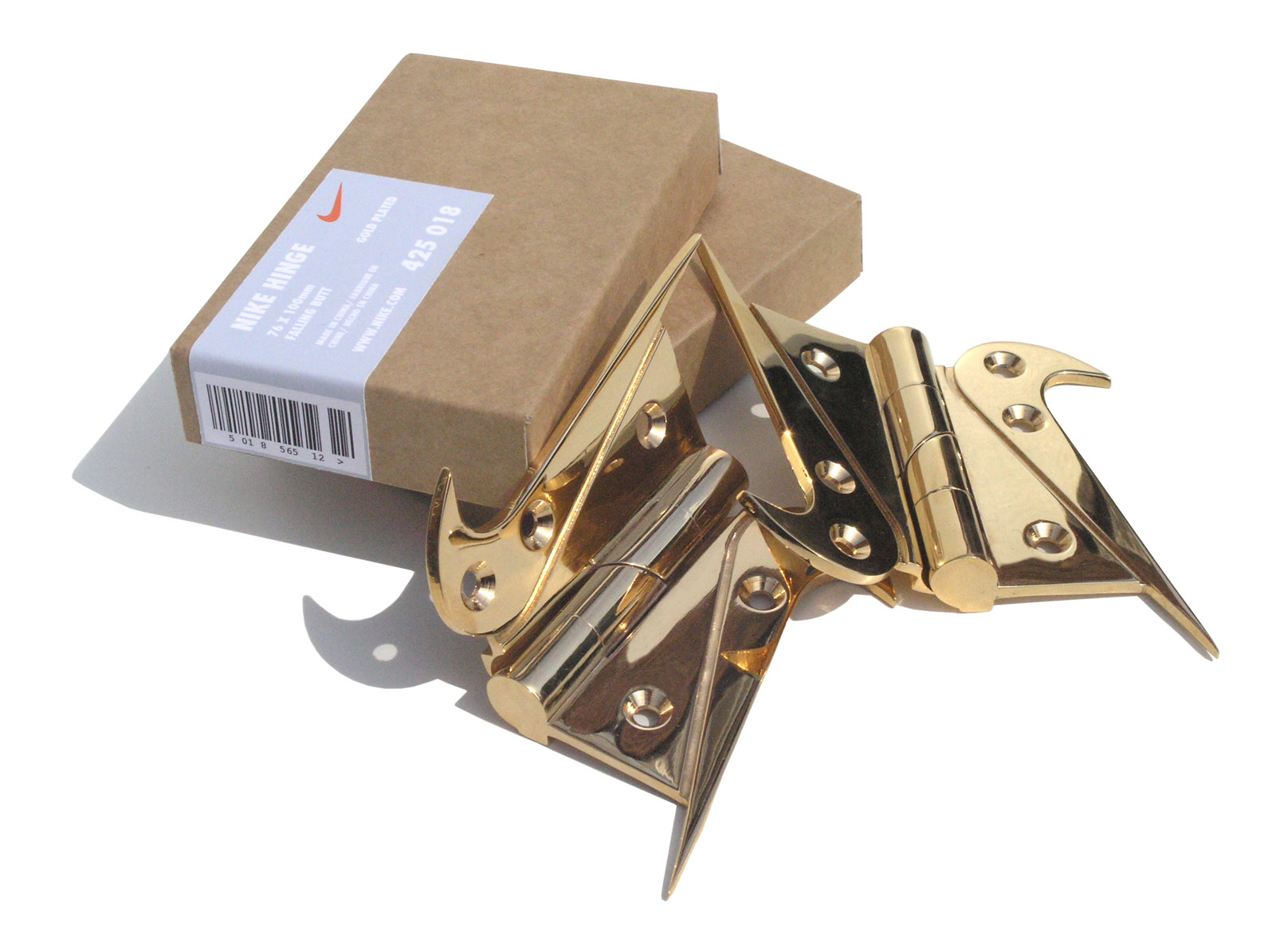 Based loosely on Duchamp's work, Door: 11 rue Larrey, the hinge stands in contradiction to those already in place at the flat. The existing 'riser butt' hinges are equipped with a mechanism that utilises the door's self weight to activate its own closure. The door cannot be 'accidentally' left open or ajar but must be propped. The proposed hinge type reverses this mechanism resulting in the self-opening door having to be propped ajar or fully closed. But it is not the mechanism of the hinge alone that yearns to be revealed. A tension exists between a desire (for the hinge resplendent in 24 carat gold plate bearing the much coveted insignia of the 'Nike Swoosh' and, consequently the occupant) to be seen and the pre-conditioned desire for privacy, the ultimate function of the door being to exclude.