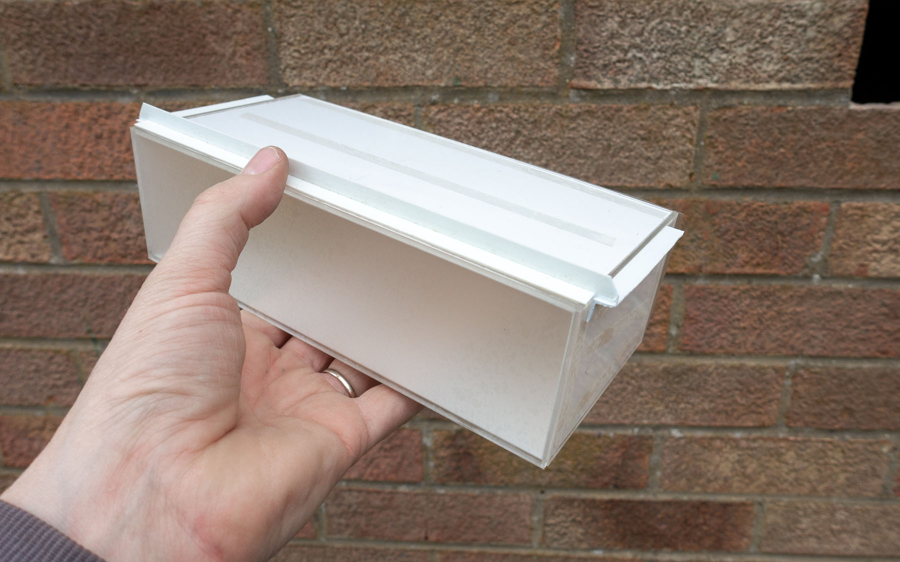The Brick Gallery is made from 1 brick. The total cost of the brick and installation was £450. The internal floor area of the Brick Gallery is 0.02 square metres. £450 divided by 0.02 sq m = £22,550 per square metre.