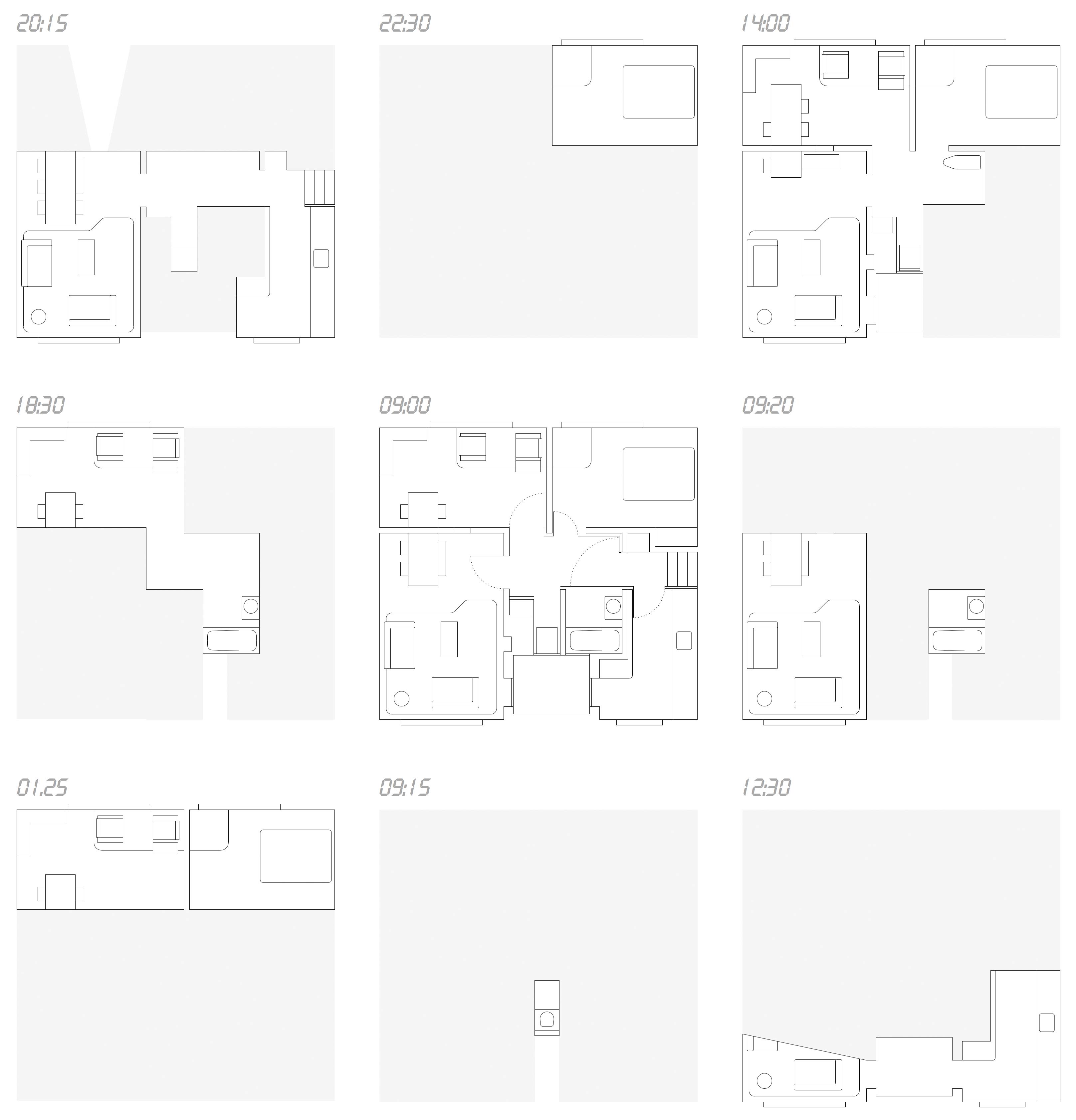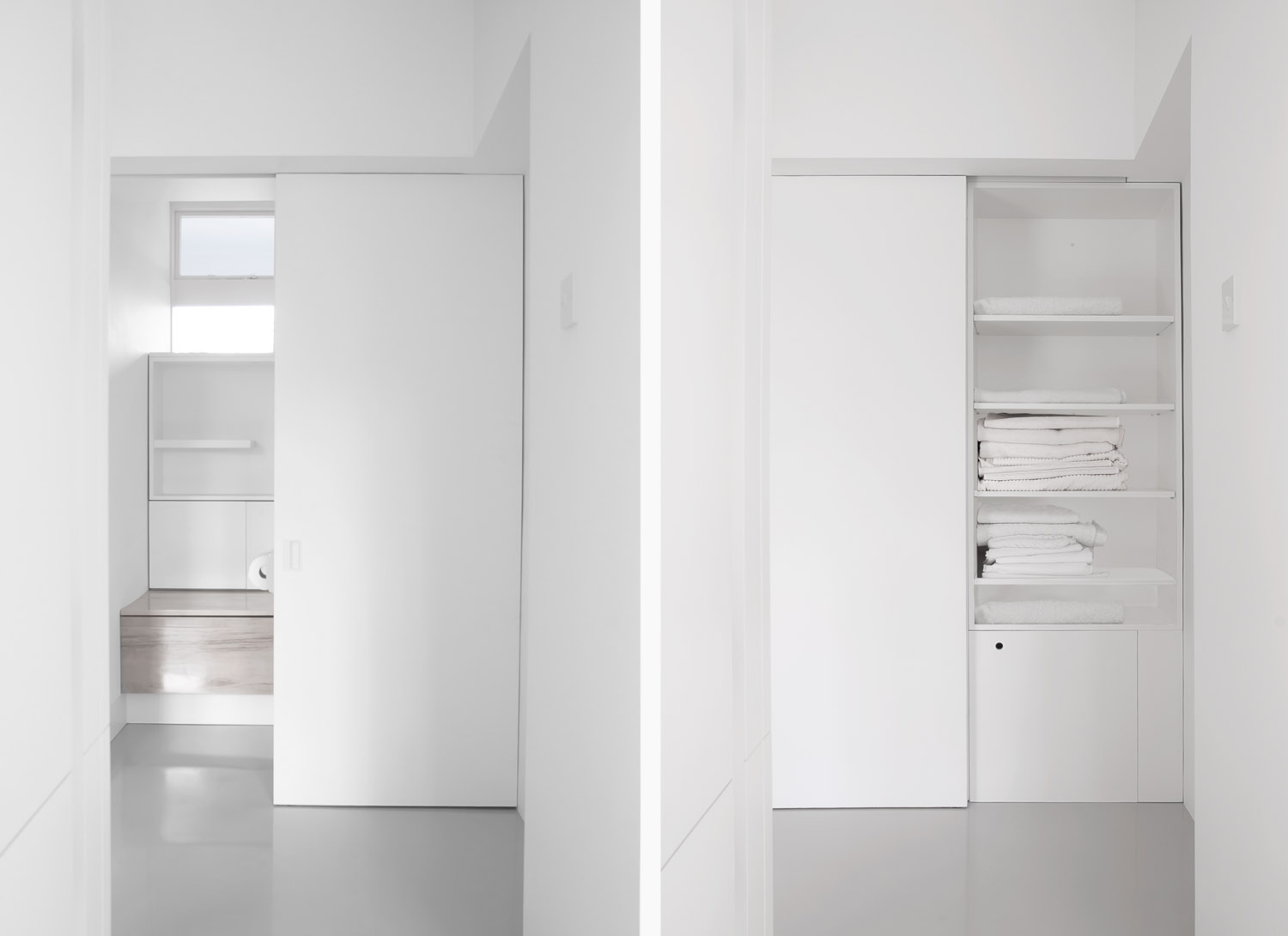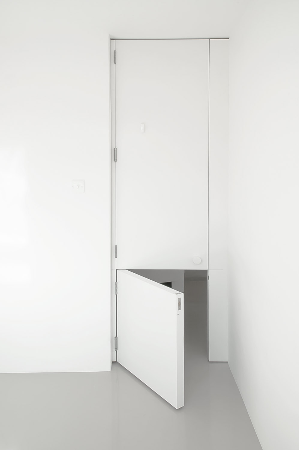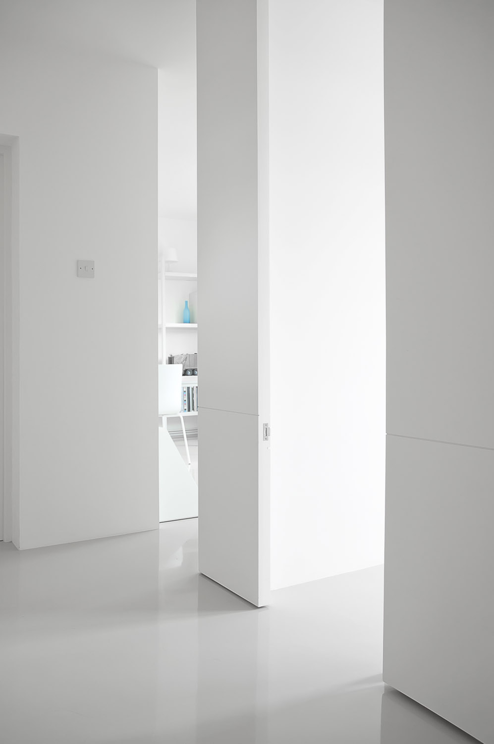 This refurbishment of a late 1960's ex-Local Authority flat in central London focused on doors, corridors and connections between rooms to subvert relationships between the spaces and their uses. Split doors, dual purpose doors, doors designed to be open, dividing doors, internal windows and furniture sharing all aided the blurring of thresholds and confines of each of the rooms. This animated and flexible use of the spaces makes random the way they are occupied. The use of the corridor for activities other than movement between rooms bestows a meaning on that space and elevates it to the status of 'room'. The corridor space becomes no longer a space that separates but one that unifies.