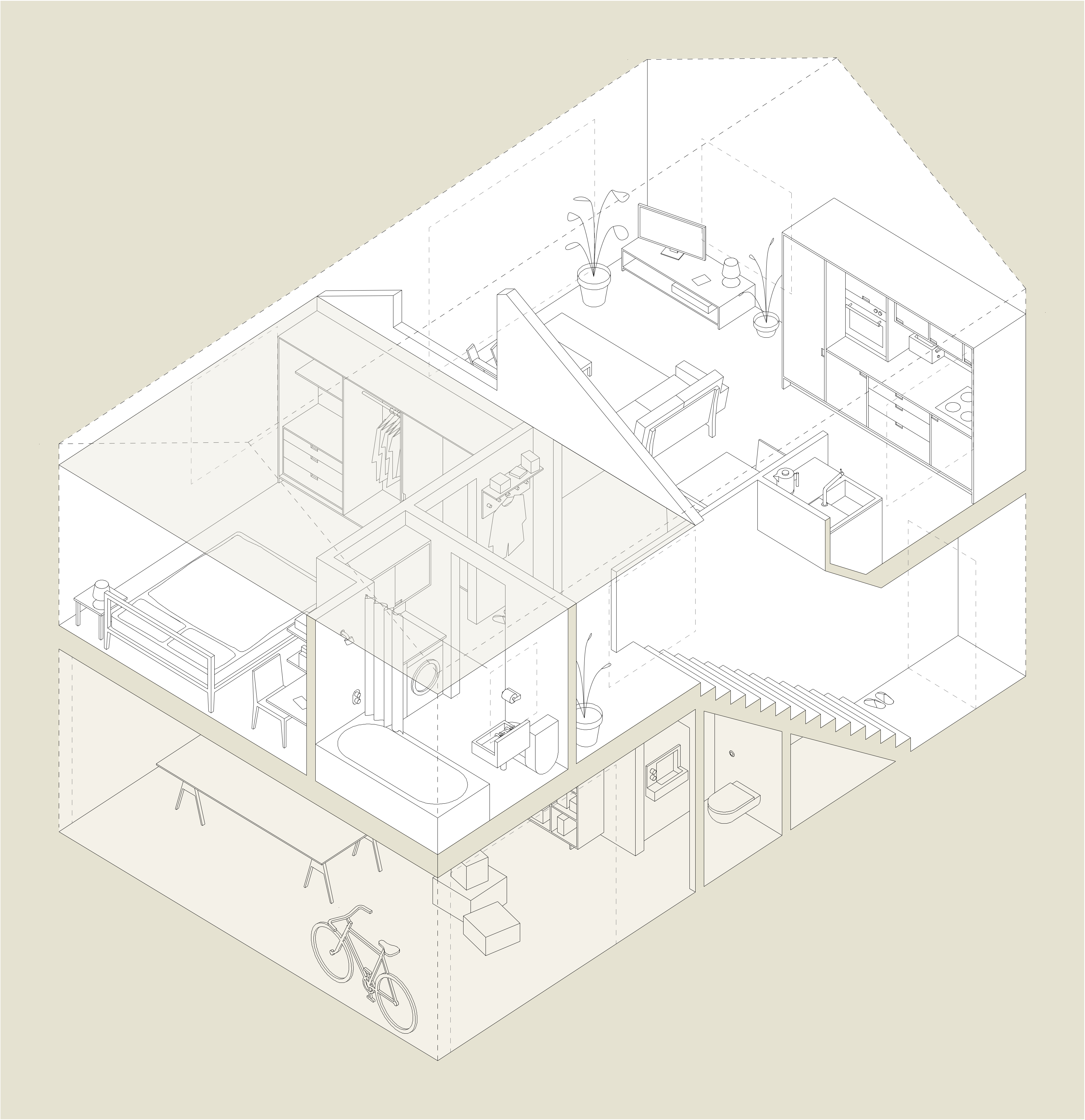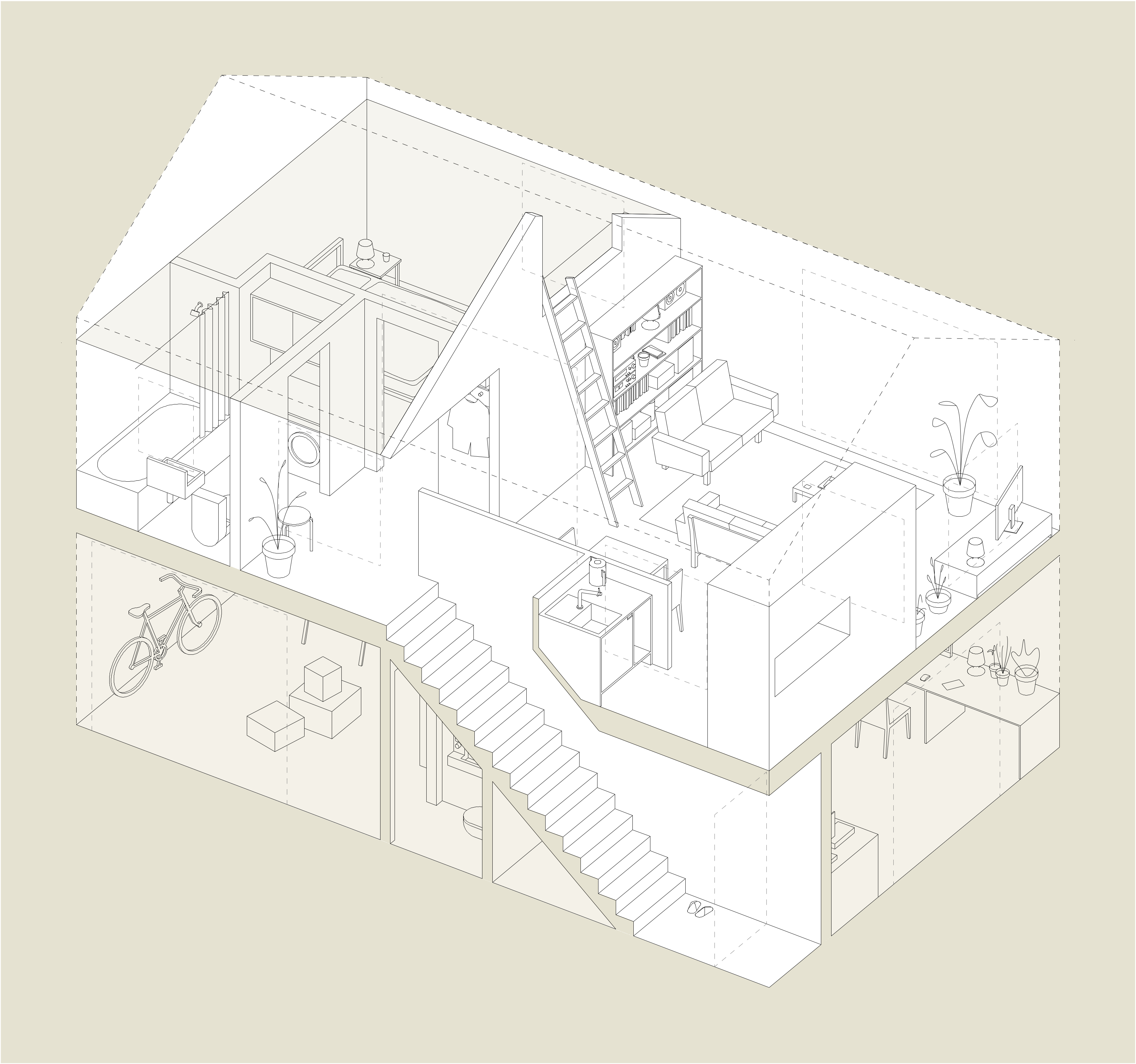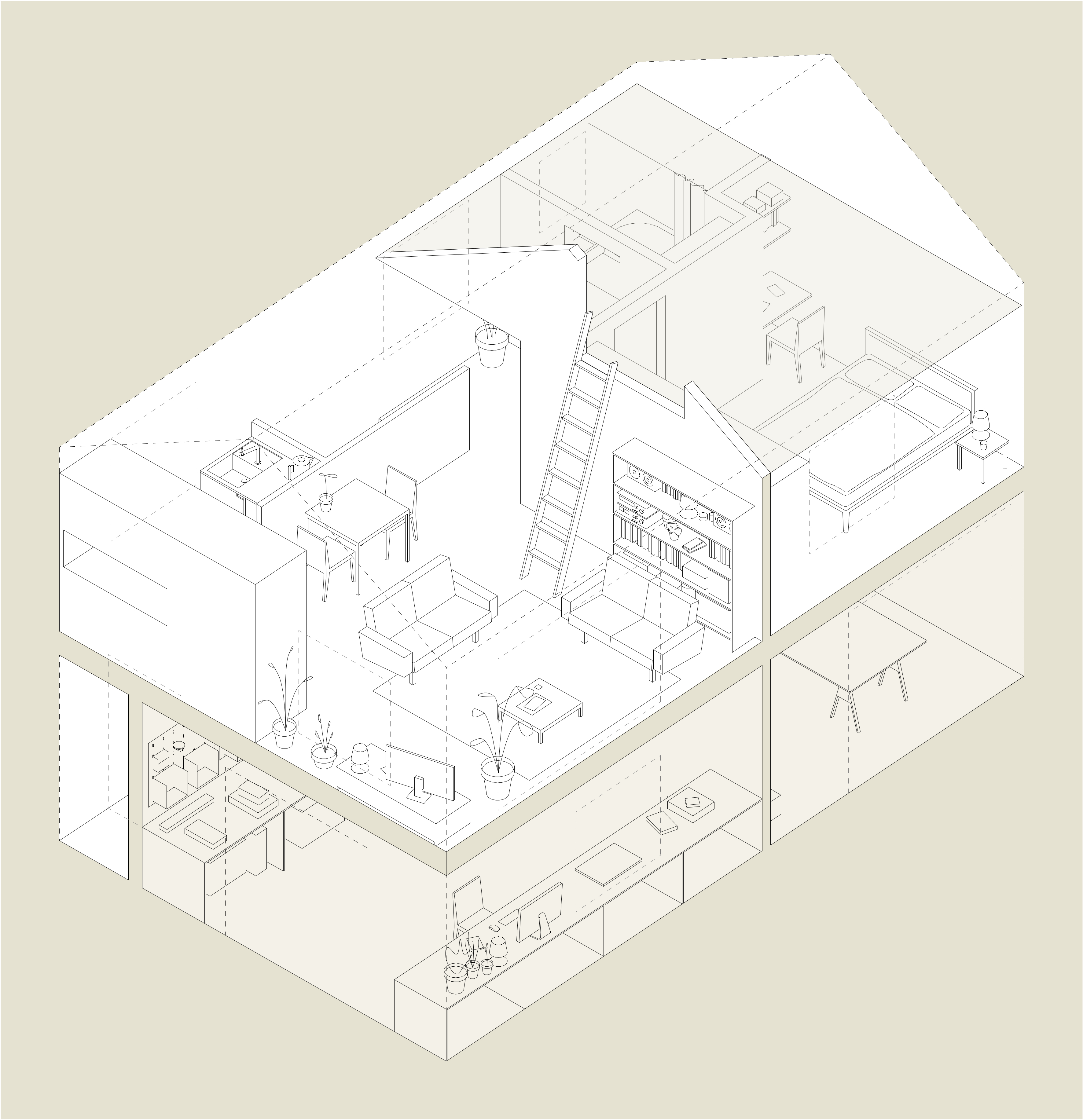 A proposal for a 1 bedroom live/ work space designed to be built by the owner.