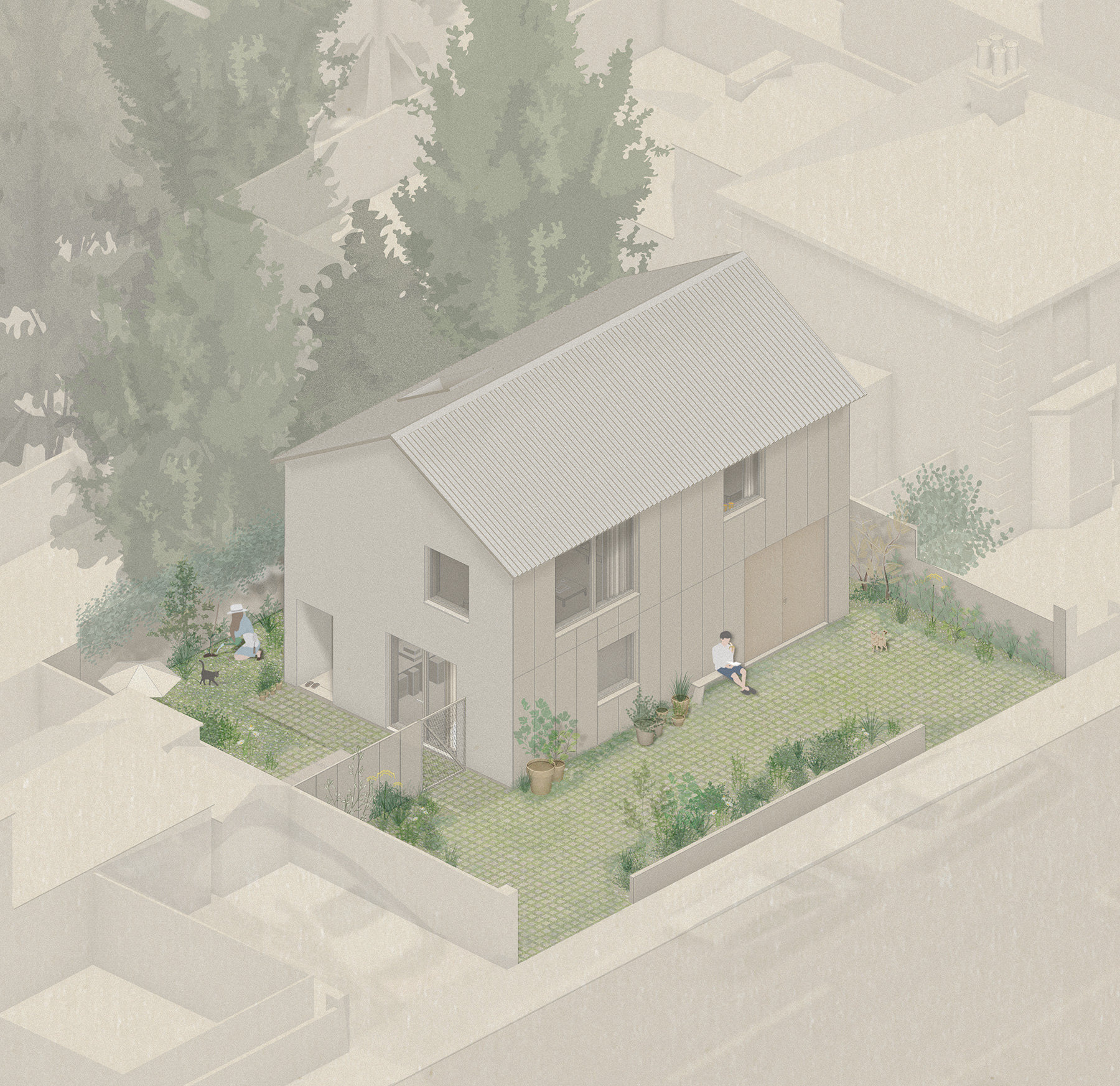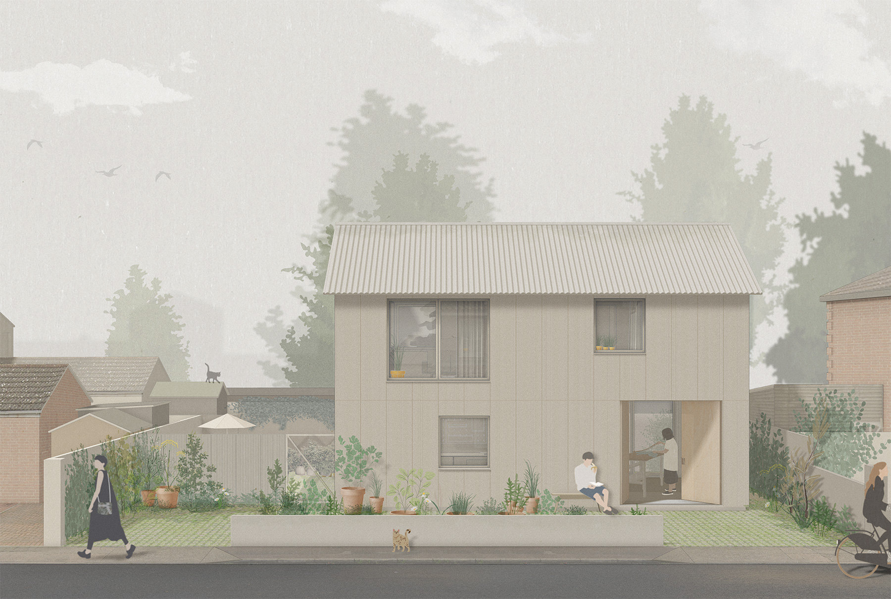 In recent years a small building plot was created by the severance of land from the rear gardens of two semi detached homes within the Rosehill Estate area. This plot offered a unique opportunity for our client - who is not a home owner - to build a sustainable, affordable, small scale home and work space for himself, in the spirit of the FLS.