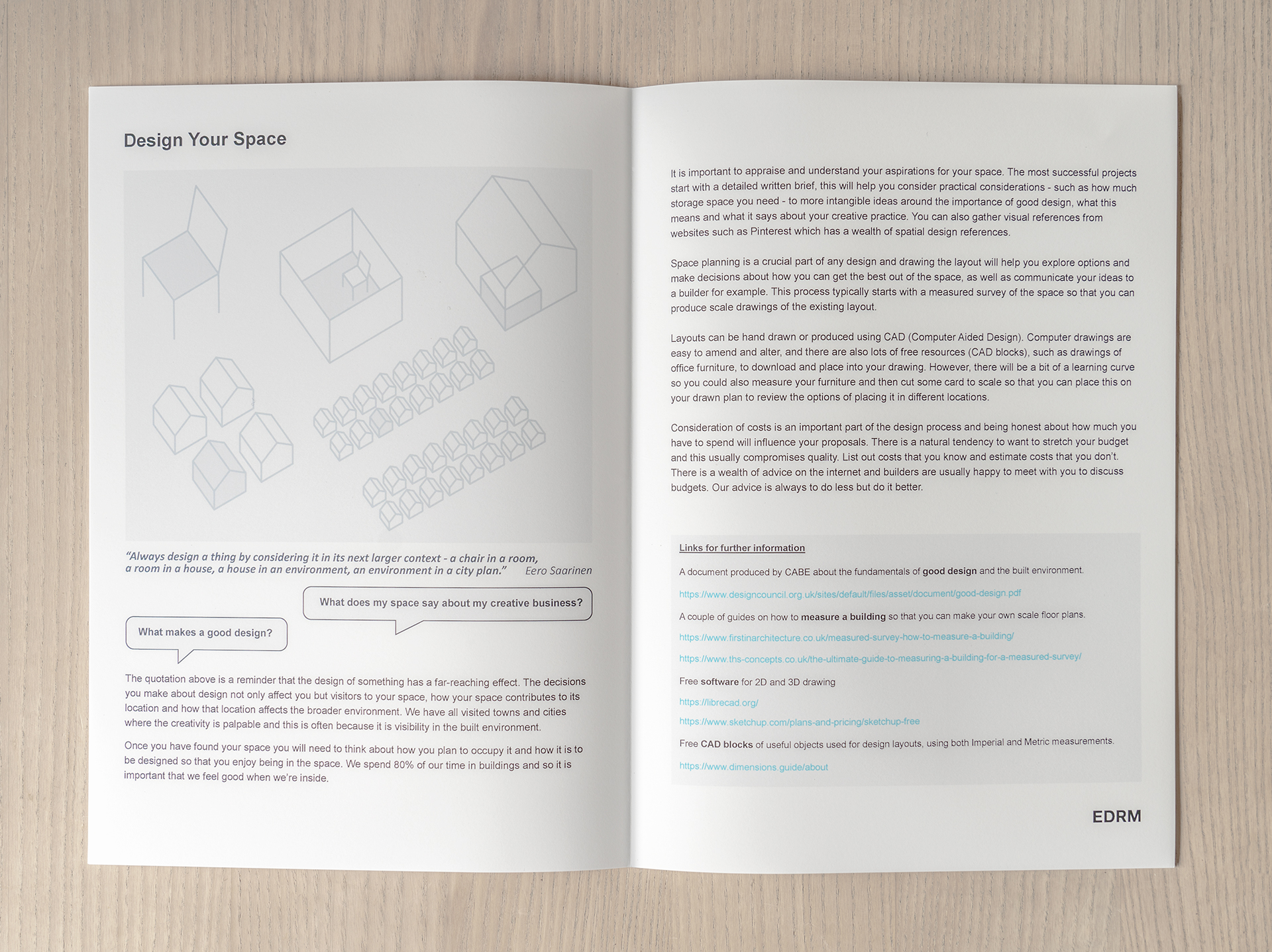 This is a toolkit document that provides information and signposts resources for creative individuals and organisations who are looking for space in which to do their thing. It contains information on how to go about identifying and securing premises and includes matters such as design, planning permission, building regulations, health and safety and cost. The document is free to download here.